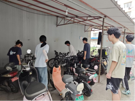 志愿活动中,工作人员向同学们科普了如何正确使用、停放电动车及其相关法律规定。在对自行车、电动车进行摆放的过程中,工作人员向同学们做出了规范引导,提醒同学们在车棚内停放自行车、电动车时要自觉有序停放,不得堵塞通道,以免造成车辆堆积。最后,工作人员着重强调了违规停放电动车可能造成的严重后果——电动车很容易因为线路温度过高或电机发热造成电路故障而短路,堆积车辆不仅影响日常出行,还容易引发电动车自燃、自爆等危险事故,事故发生时车辆堆积会导致抢救难度升级,后果不可估量。