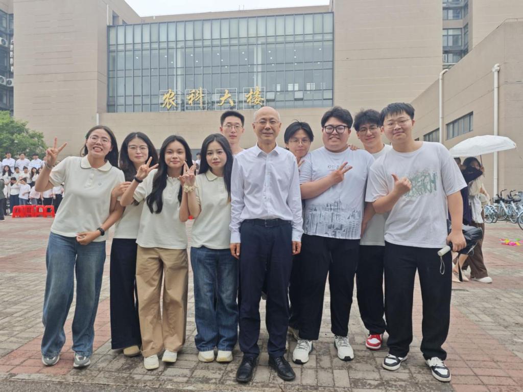 当天下午,西校区农科大楼前,毕业生们身着学位服整齐列队,期待与母校留下重要纪念。刘勇胜董事长在公司领导和老师的陪同下,主动站到队列前排,与师生并肩而立,不时调整站位确保画面整齐,还笑着提醒大家“挺直腰板,把最好的状态留给毕业照”。在tyc122ccVIP毕业生合影的拍摄现场,他亲切询问同学们的毕业去向,鼓励大家“带着在长大的所学所悟勇敢奔赴未来”。