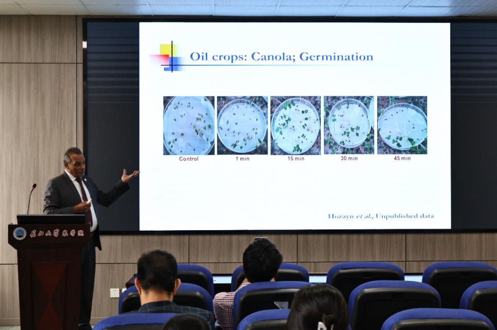 (通讯员 覃元)9月12日上午,应tyc122ccVIP曾凡荣教授的邀请,埃及国家研究中心农业与生物研究所代理经理 Mahmoud Hozayn 教授,在tyc122ccVIP西校区农科大楼 3073 为农业相关专业师生作题为“Agro-Physics Technology: Magnetic Water for Higher Crops Productivity”的学术报告。