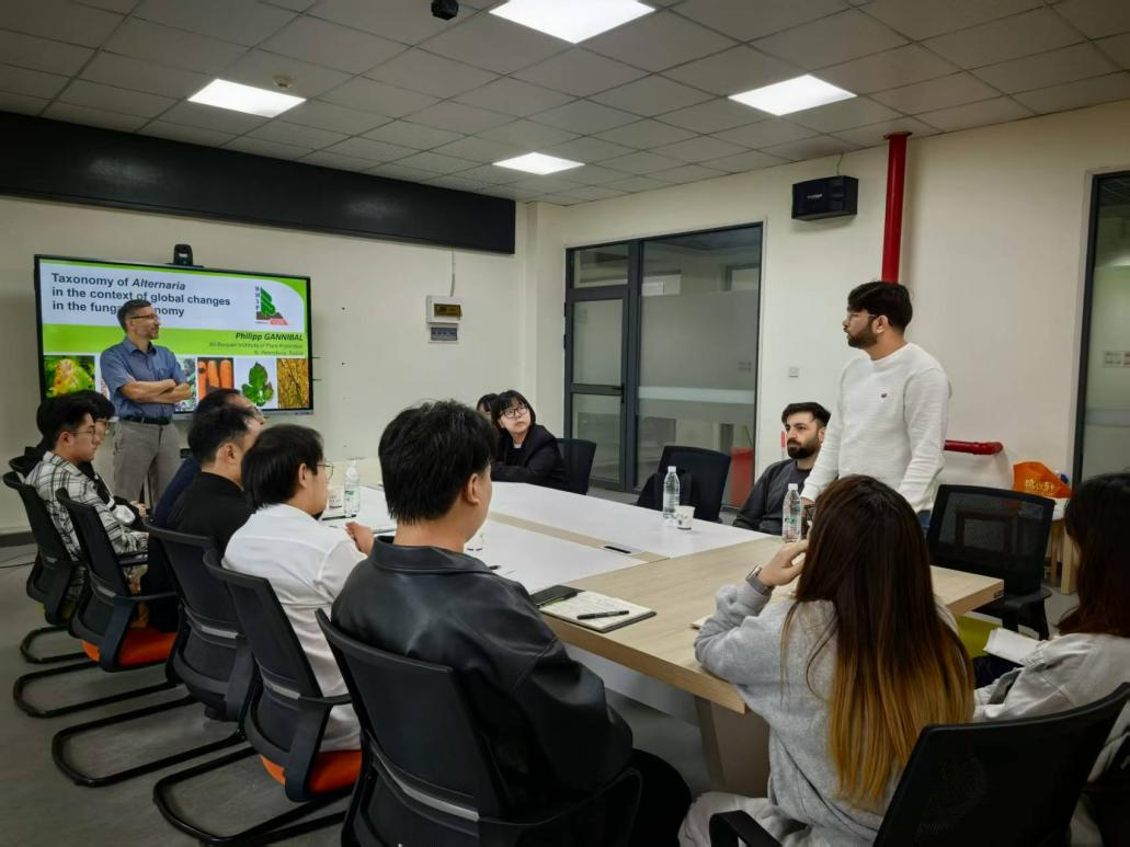 9 月 25 日,Gannibal Filipp 教授与邓建新教授团队聚焦链格孢菌系统分类展开专题研讨。双方通过报告的形式分享了链格孢菌分类方面的研究成果,就研究难点深入探讨,并初步达成合作意向。澳大利亚塔斯马尼亚大学博士 Muhammad Atif AZEEM、Usman IJAZ 也参与研讨。