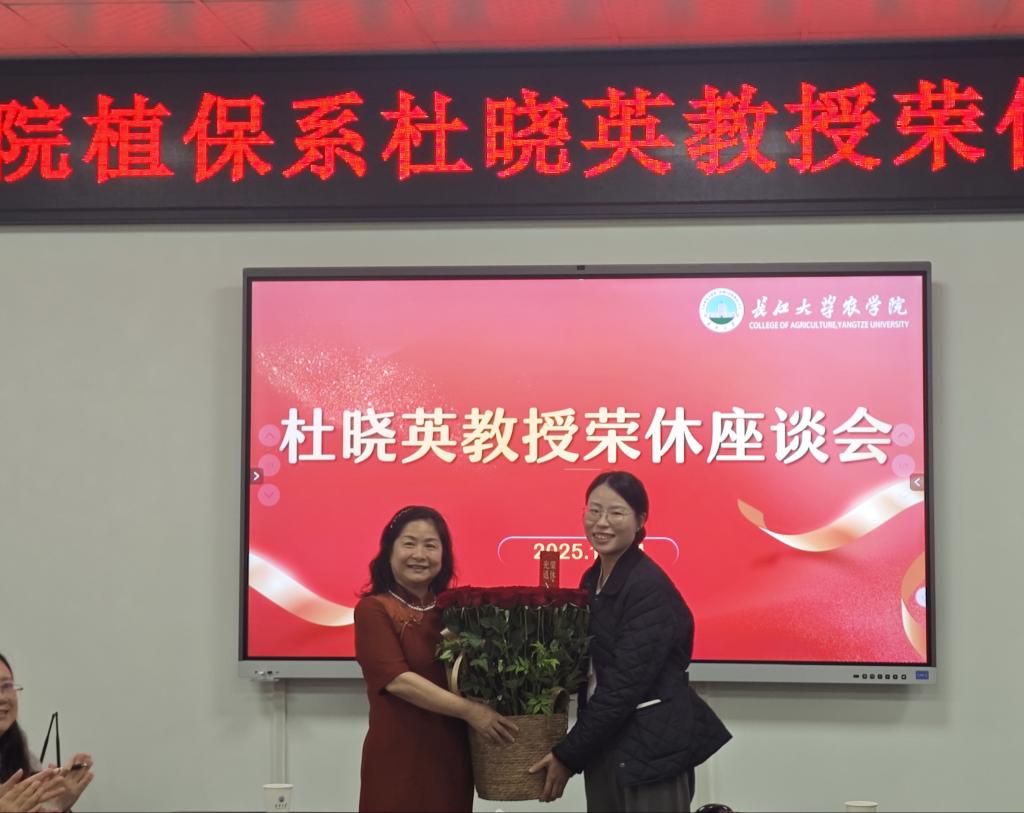 (通讯员 周静)2025年11月4日下午,tyc122ccVIP在农科大楼3064会议室为杜晓英教授举办了一场温馨的荣休座谈会。公司领导班子与全体植物保护系教师参加了本次座谈会,会议由植保系主任邓建新教授主持。