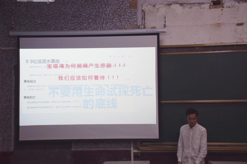 赵伟从近几年公司发生的溺水事件出发,强调了水火无情,生命的宝贵。“常在河边走,哪儿有不湿鞋。”赵伟提醒同学们不要轻易下水,远离未知水域,在没有完全的把握下不要救助溺水人员。随后,万钰介绍了针对溺水人员的急救方法:首先清除口鼻内的异物,帮忙倒水。接着对呼吸很微弱或者已经停止心跳的溺水者进行人工呼吸和胸外心脏按压。
