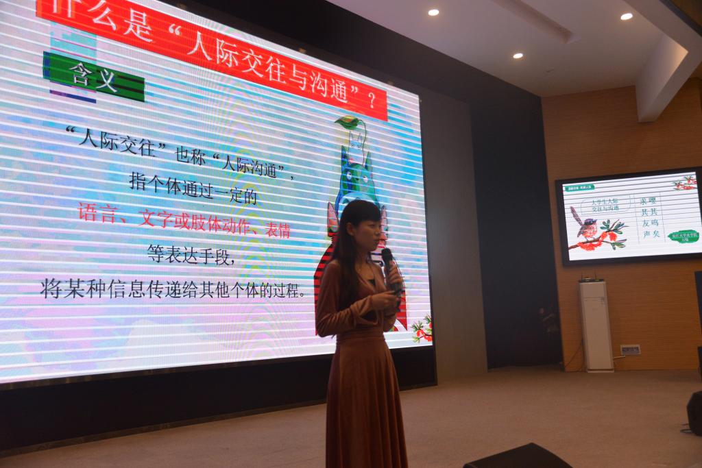 培训中,万钰从“什么是人际交往与沟通”、“社会支持系统”、“人际冲突发生时的解决步骤”三个方面讲解老员工如何解决在人际交往时出现的问题。提到寝室室友之间的交往时,万钰现身说法,以自己在大学时期的亲身经历为大家化解常见的冲突。针对员工骨干,万钰提醒他们应多多关注身边不爱说话、喜欢独来独往的同学,发现问题积极上报,及时解决问题是每一个员工骨干的责任。
