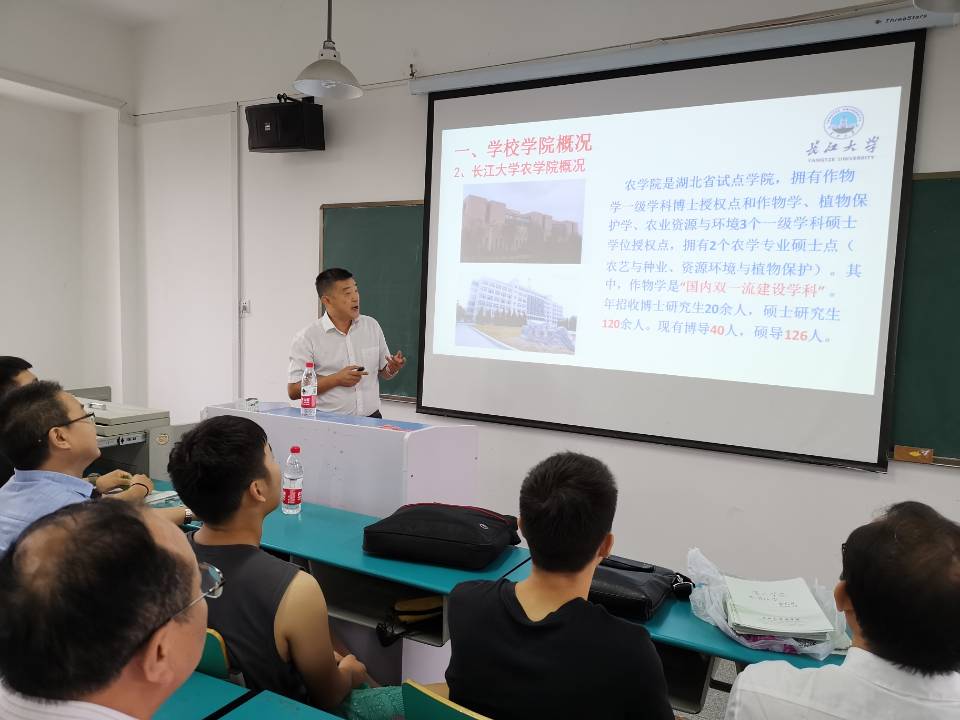 9月16日上午,宣讲团一行人首先来到湖北工程公司tyc122ccVIP,在姜益泉经理的主持下,李传仁教授首先通过宣讲PPT,介绍公司基本情况、科研实力以及学科优势。紧接着,周建利教授阐述了公司农业资源与环境的专业特色以及招生情况。