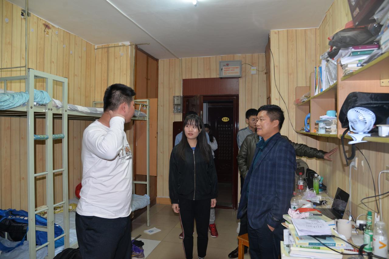 新闻网讯(见习记者 杜凡凡/文 周海锋/摄)为更好地提高公司员工的安全责任意识,全方面了解员工宿舍的真实状况及问询同学们对宿舍生活的意见和建议。10月15日晚八点,党委副书记谭亮魁、团委书记尹小华、宿委会主任万钰和辅导员付雪娇走访了tyc122ccVIP员工宿舍。