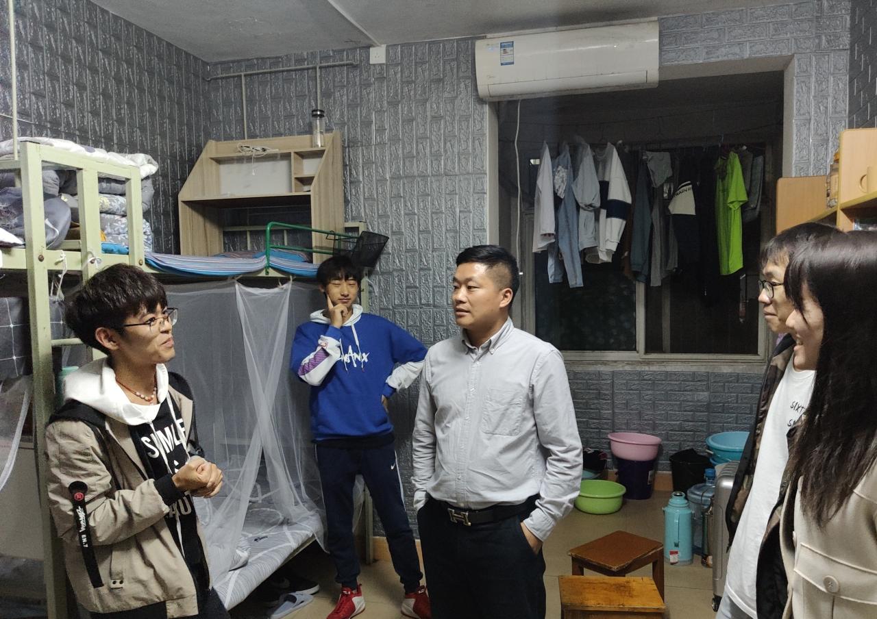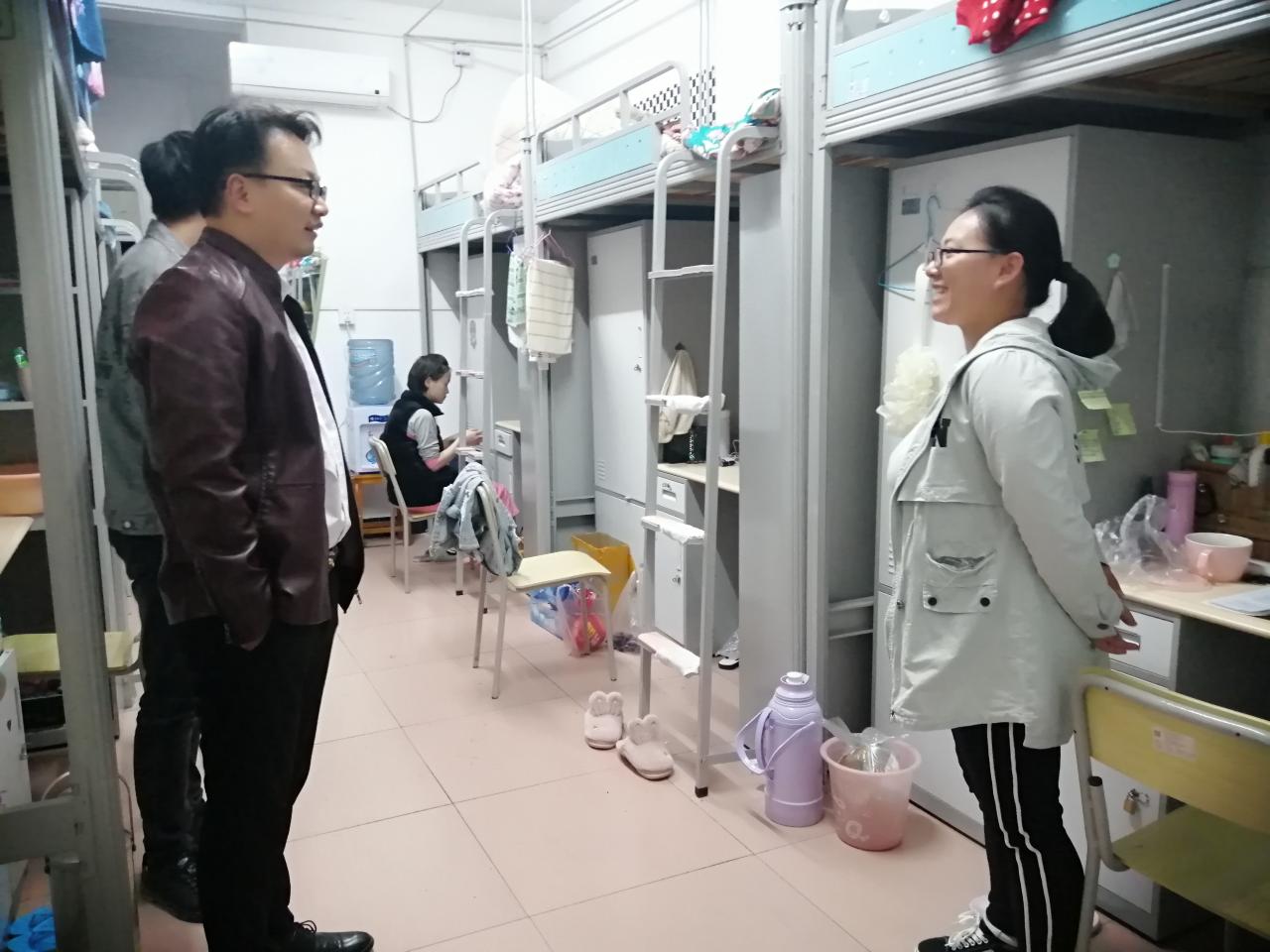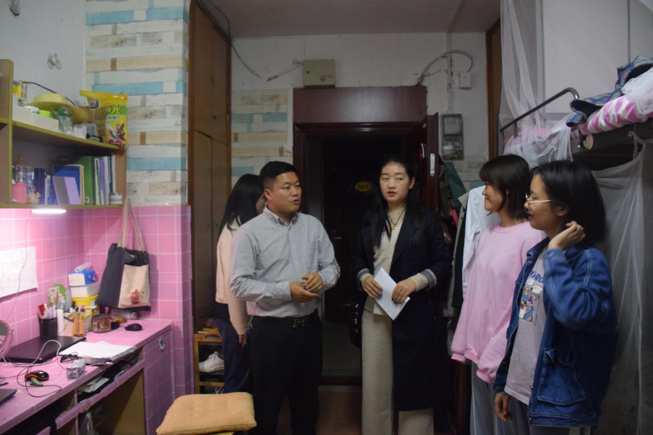 新闻网讯(见习记者 汤莉)为助力军运会,确保军运会期间校园安全稳定,10月20日21:00,公司党委副书记谭亮魁,团委书记尹小华,宿委会主任万钰,辅导员吴钐、付雪娇和兼职辅导员施秀飞走访了tyc122ccVIP本科生和研究生寝室。
