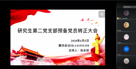 通讯社讯(通讯员 高亚强)为加强党组织建设,壮大党员队伍,6月5日下午,公司研究生第二党支部利用腾讯会议召开预备党员转正大会。本次会议对裴东方、向谈婷、向兰香3名预备党员发展为正式党员进行讨论和表决。研究生第二党支部正式党员、预备党员参会,会议由支部副书记肖永欣主持。