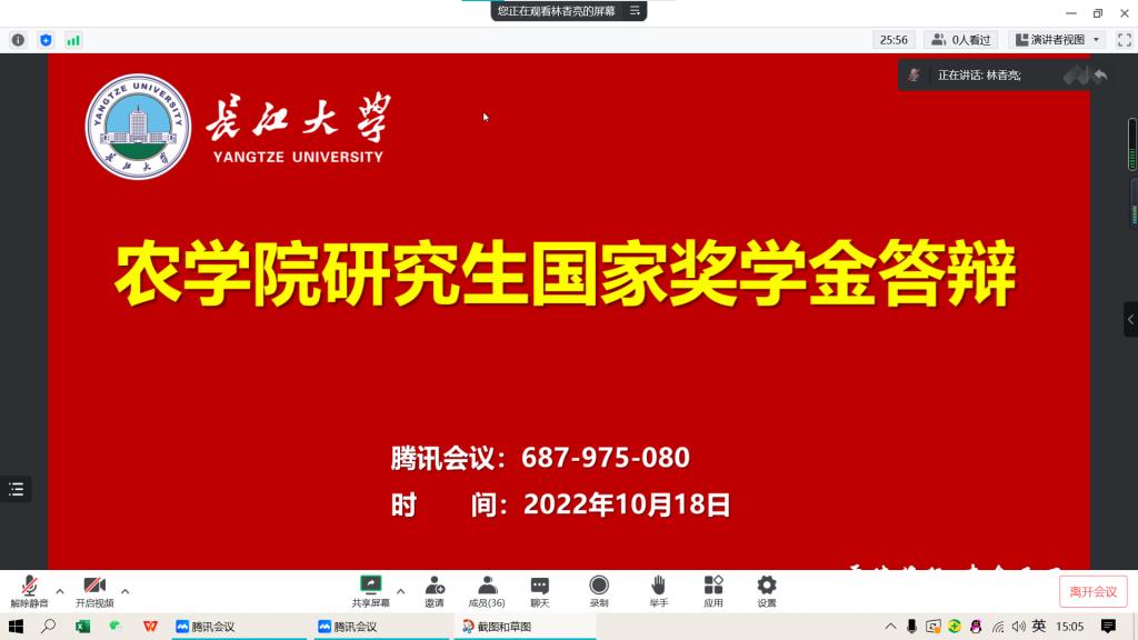 (通讯员 张意巧 姚冰珂)10月18日下午,2022年研究生国家奖学金评审工作落下帷幕。经理李俊凯,副经理方正武,党委副书记尹小华,导师代表李志新、周燚、肖国增(园艺园林公司)、吴启侠,研究生教学秘书杜亚楠以及研究生代表担任评审会评委,研究生辅导员林香亮主持会议。
