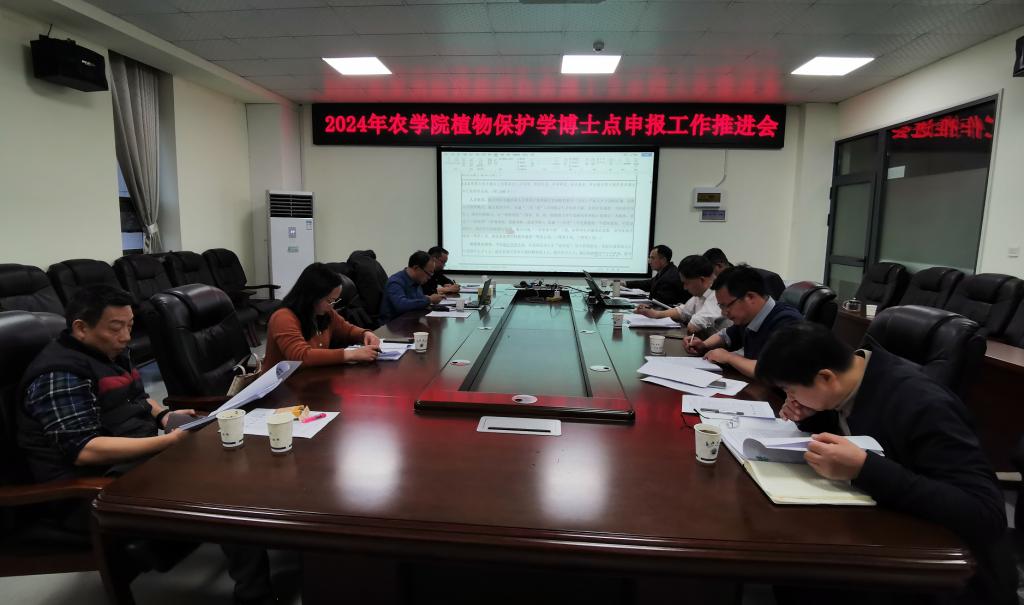 会议围绕教育部植物保护学博士点新增申报条件展开,特邀校内专家管锋处长、唐伦刚处长、王真副处长、经管公司何蒲明教授(副经理),以及公司植物保护学骨干专家王文凯教授、李俊凯教授把脉问诊。结合植物保护学博士点申报工作进展,围绕植物保护学学科优势、特色,办学成果,学术骨干等申博材料展开研讨。