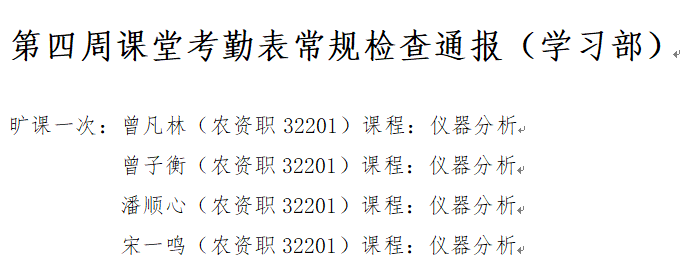 为端正学风、严肃校纪校规,现对全体员工课堂考勤常规检查给予通报。