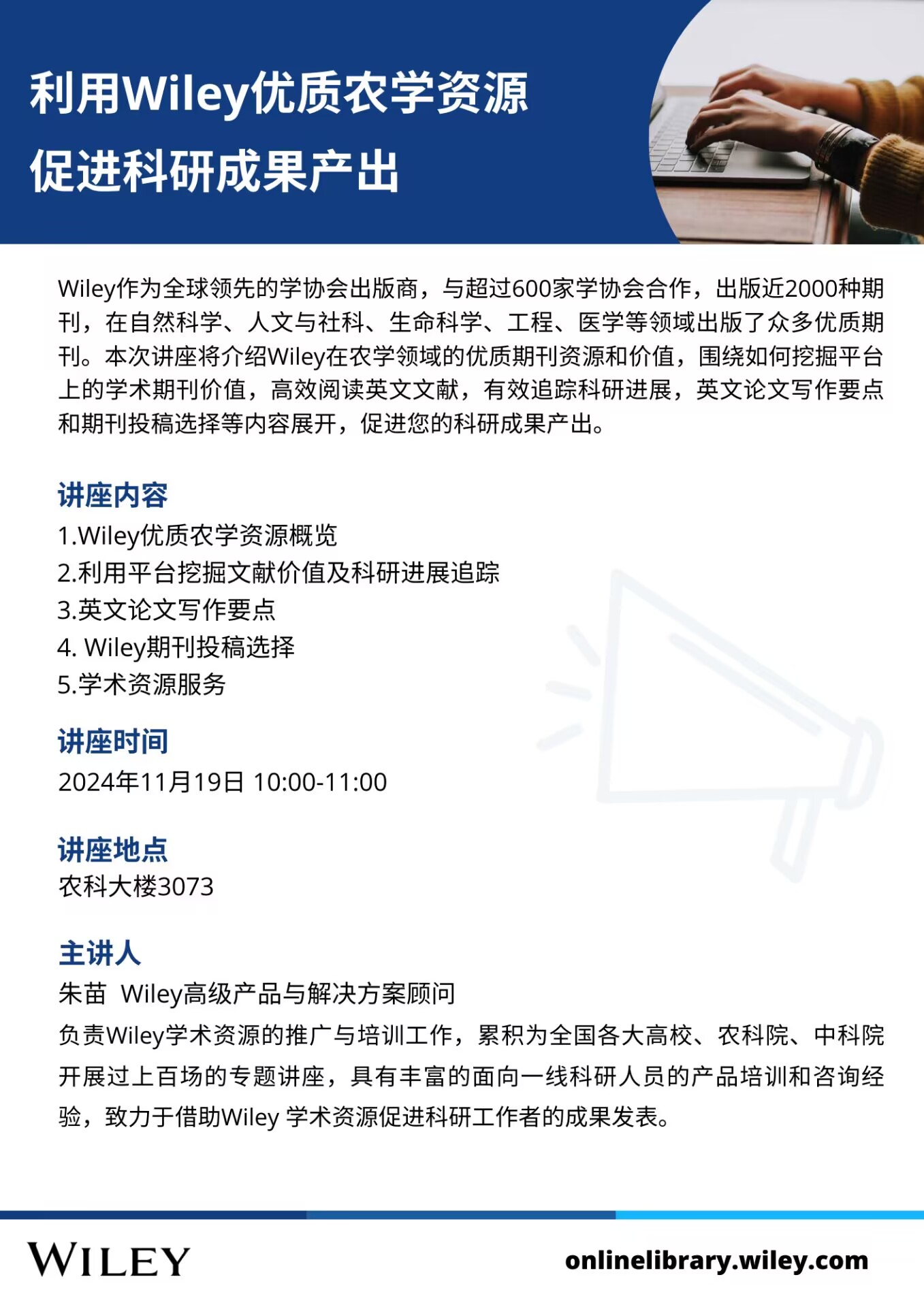 2024年学术报告(二十四):利用Wiley优质农学资源 促进科研成果产出