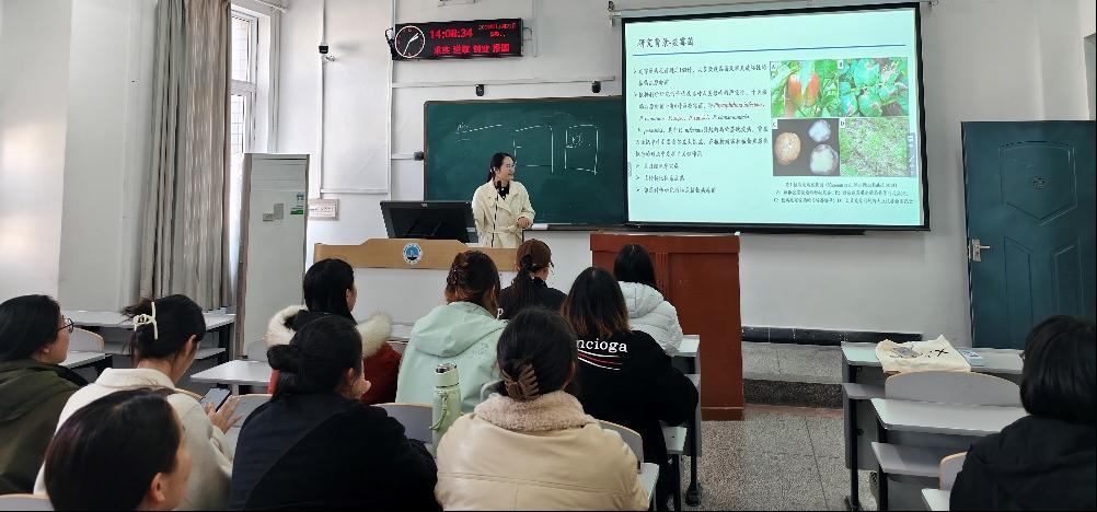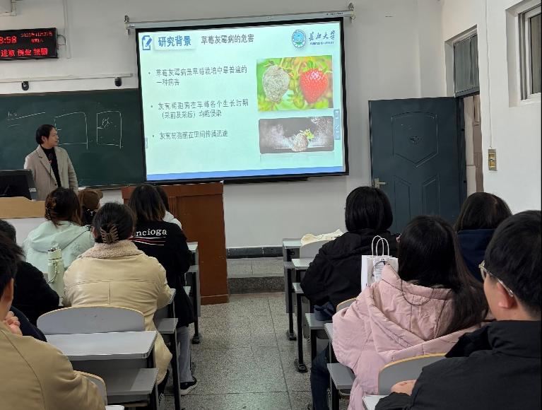 刘海峰副教授主讲《草莓灰霉病菌抗药性研究》。灰霉病是草莓主要病害,病原为灰葡萄孢菌,化学防治仍是当前主要防控手段,但长期单一用药易导致病原菌抗药性快速演化。讲座详解了靶标抗性与非靶标抗性的分类及特点,以琥珀酸脱氢酶抑制剂为例介绍靶标抗性研究,并讲解了与非靶标抗性相关的转录因子BcMrr1的研究进展,为病害化学防治提供理论基础。