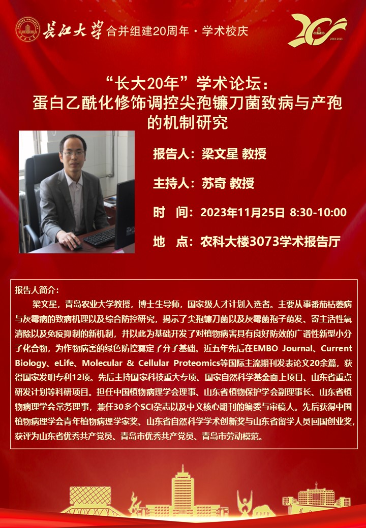 上一篇: “长大20年”学术论坛暨tyc122ccVIP学术讲坛:Endoplasmic reticulum homeostasis in plant immunity