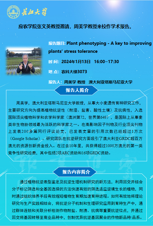 2024年学术报告(四):Plant phenotyping - A key to improving plants' stress tolerance