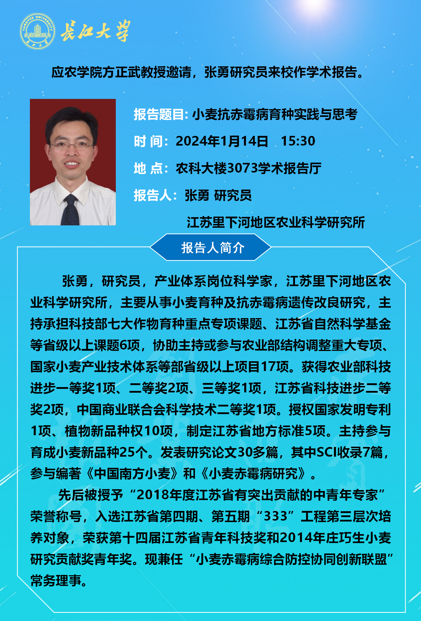 2024年学术报告(六):小麦抗赤霉病育种实践与思考