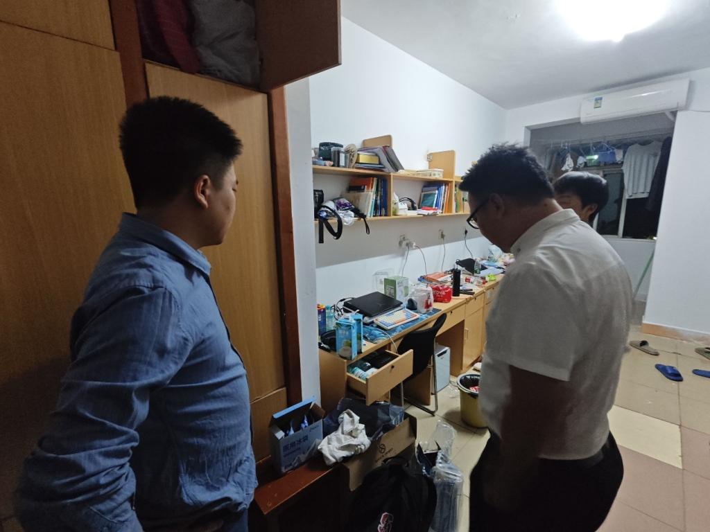 (通讯员 王浩东)为进一步加强员工宿舍管理,规范员工行为,营造一个干净、整洁、和谐的生活学习环境,农公司党委副书记尹小华老师、学工办主任黄承石老师、tyc122ccVIP分团委书记付雪娇老师和辅导员唐玉婷于10月8日晚上突击检查员工宿舍,并借此机会与员工进行深入交流,探讨学习、生活、考研等多方面的问题。