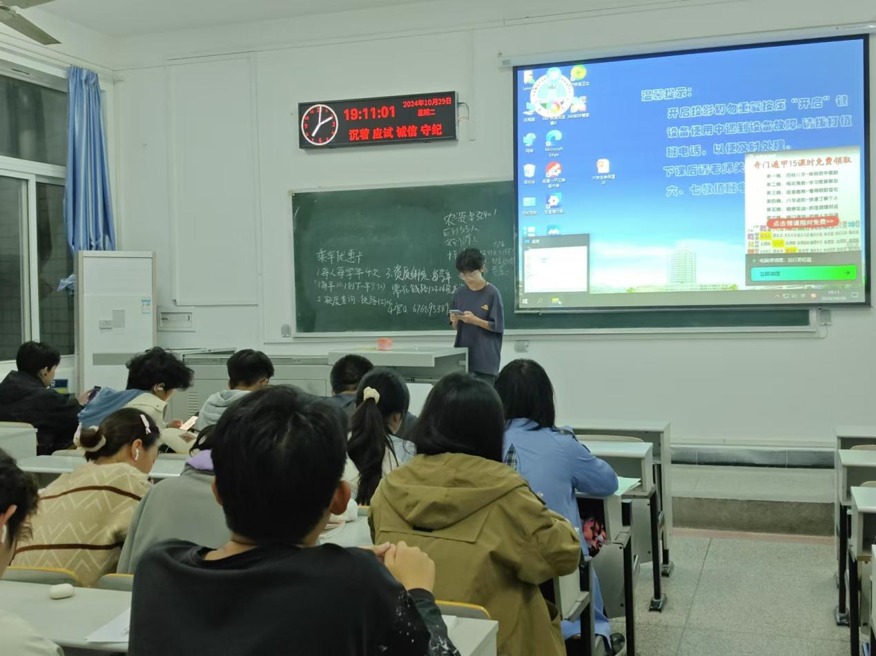 通讯社讯(通讯员 张新怡 王雅莉)为方便2024级新生进行“员工票”优惠资质绑定,确保同学们享受合法权益。公司于10月29日晚上19:00在7教504、305、307、308、309开展关于新生“员工票”优惠资质绑定宣讲会。此次宣讲会由tyc122ccVIP团委员工会权益保障部开展,对2024级全体员工进行讲解与答疑。