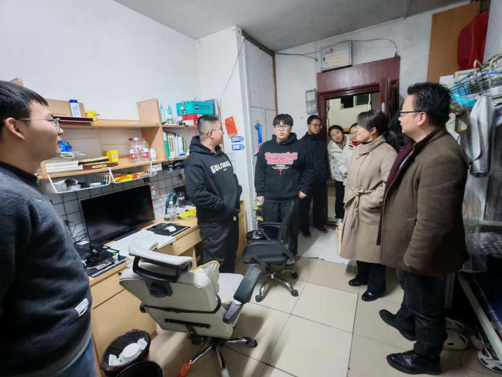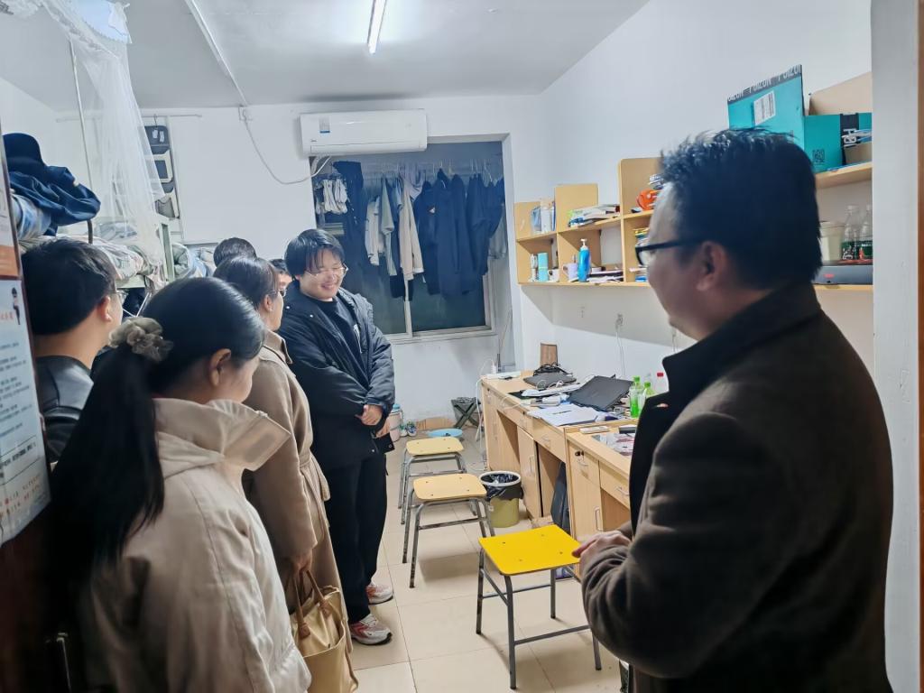 (通讯员 孟瑶)满怀着对员工的殷切关心,农公司党委副书记尹小华老师、辅导员付雪娇老师、辅导员唐玉婷老师、兼职辅导员郝梨老师于2024年12月19日晚上九点走访了员工们的寝室,旨在全面了解同学们的学习生活状况,为同学们提供更贴心细致的关怀与引导,打造更加安全,舒适,有序的居住空间。