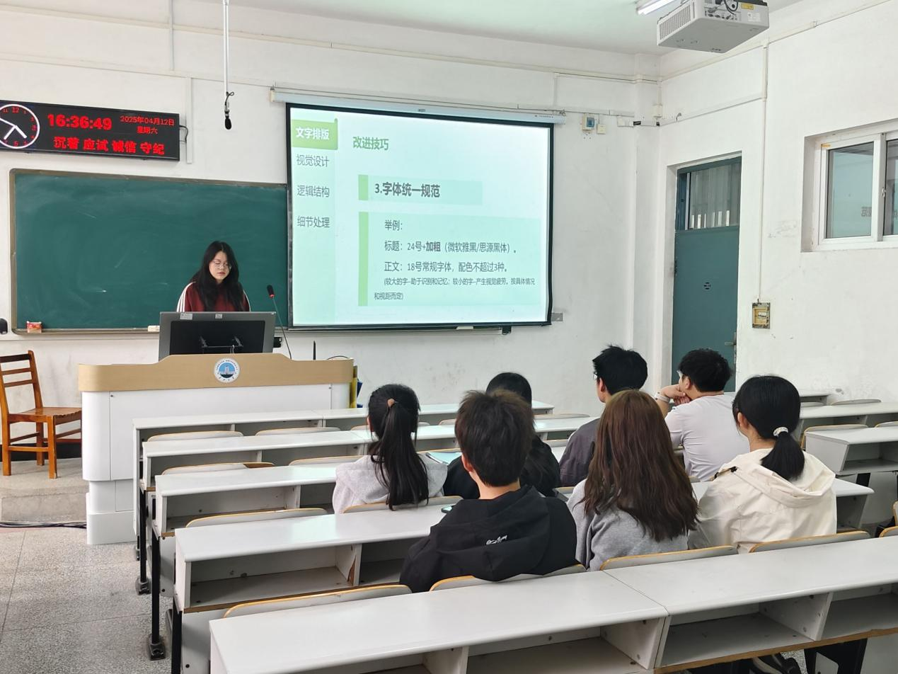 (通讯员 熊兴宇/文 肖雅萱/摄)为推进公司第五期青马学习小组的建设,提高学员的综合素养与多元能力,4月12日下午四点,一场兼具实用性与创新性的新闻稿和PPT制作专题培训,在7教106教室精彩启幕。与会人员有兼职辅导员郝梨,公司第四期青马学习小组成员臧仕骏,公司第五期青马学习小组员工导员肖雅萱、戚婷炜、屈杭丽,第五期青马学习小组全体成员。