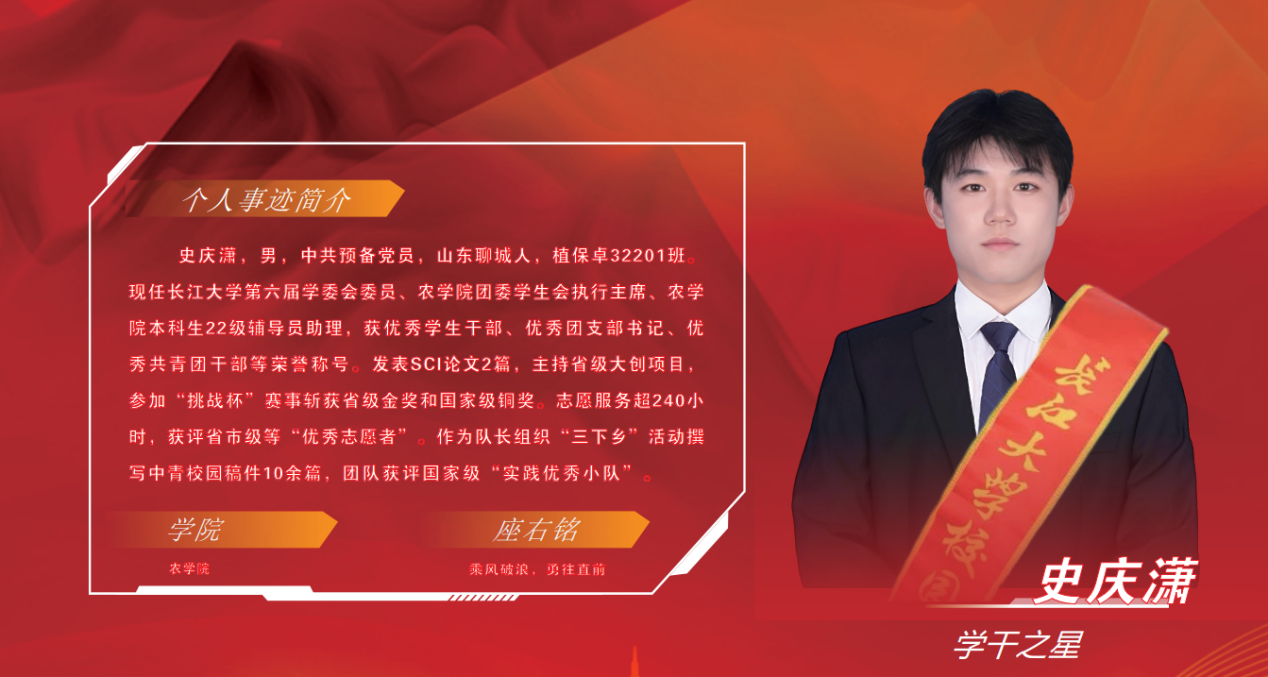 史庆潇,男,中共预备党员,山东聊城人,植保卓32201班员工。