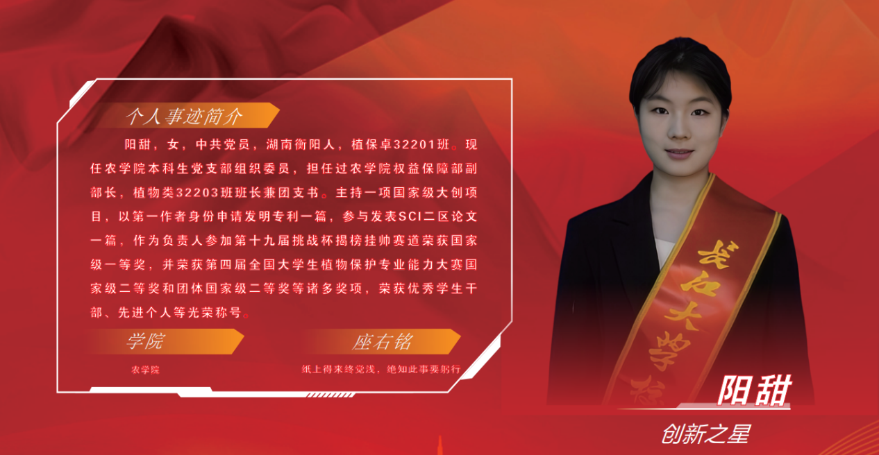 阳甜,女,中共党员,湖南衡阳人,植保卓32201班员工。