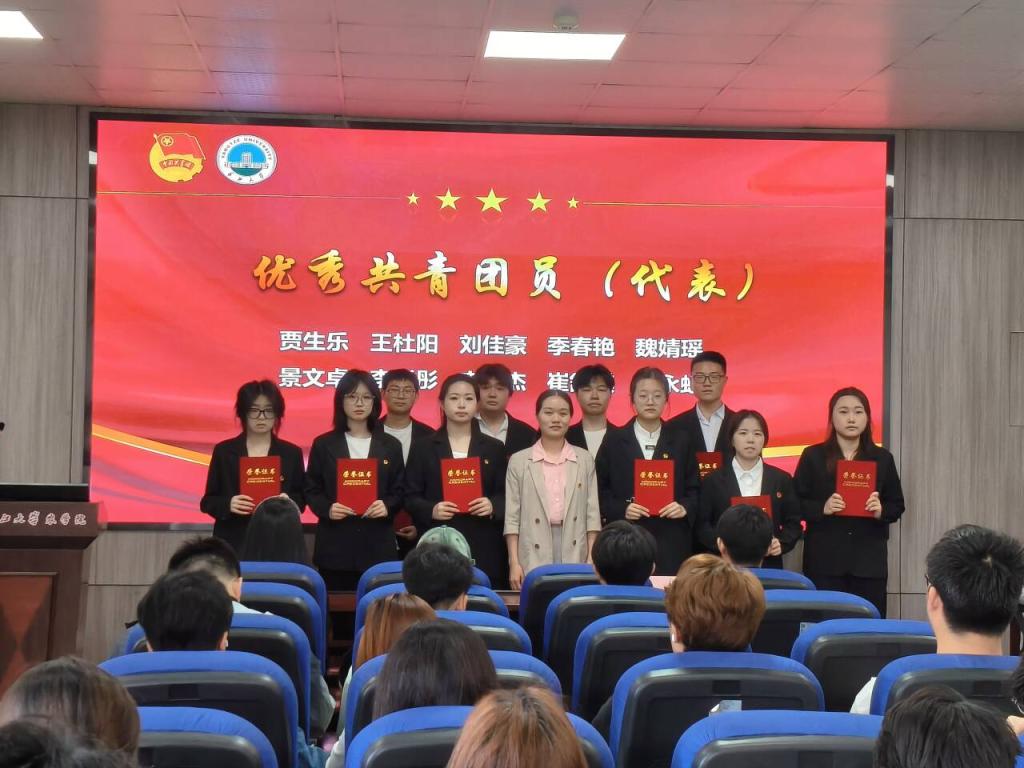 在五四评优表彰环节,主持人宣读了2025年tyc122ccVIP团员在评优表彰中的获奖情况,并邀请付雪娇老师为“优秀共青团员”、“优秀共青团干部”和“活力团支部”代表颁奖。