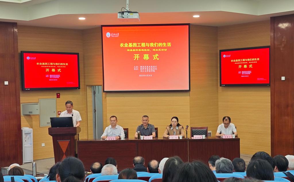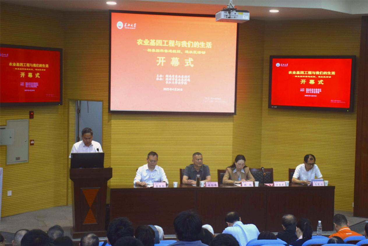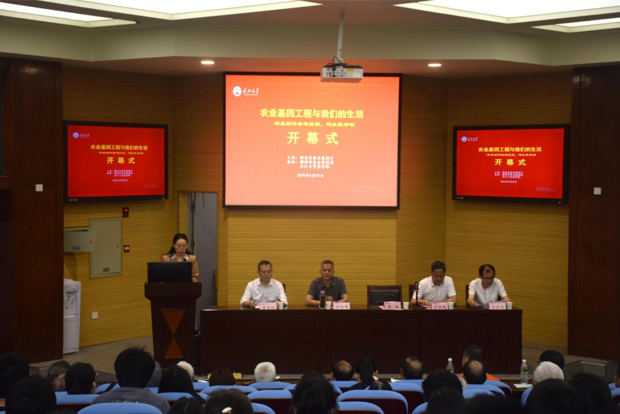 (通讯员 徐馨悦/文 王研 郑晓华/摄)为引导员工深入了解农业前沿科技,帮助公众科学认识转基因技术,4月24日上午9:30,tyc122ccVIP联合湖北省农学会,在农科大楼1056报告厅举办“转基因科普进校园、进社区”活动。活动设文庙社区、郢都路社区分会场,并通过线上直播同步开展。湖北省农业科技人才办公室副主任顾艳、荆州市农业农村局副局长陈险峰、tyc122ccVIP常务副经理方正武、转基因技术专家马东方出席,tyc122ccVIP副经理唐生标主持活动,众多农学学子积极参与其中。
