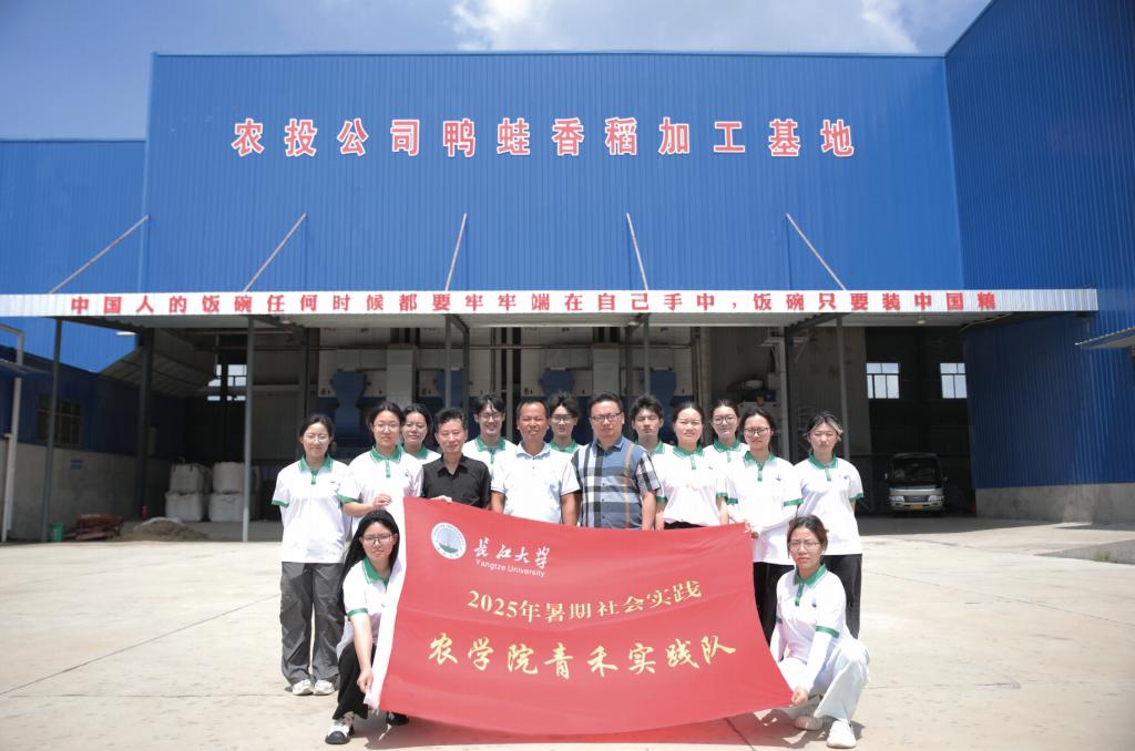 (通讯员 屈杭丽 周婧)在希望的田野上,科技与生态正谱写着一曲和谐的共生乐章。7月10日,tyc122ccVIP农公司党委副书记尹小华、院团委书记付雪娇和tyc122ccVIP暑期"三下乡"社会实践队员来到了湖北省石首市长安村。在长安村党支部赵文龙书记的带领下,实践队员深入田间地头与智能化育秧基地,实地探寻"鸭蛙稻"生态种养模式,见证科技如何为现代农业注入绿色新动能。