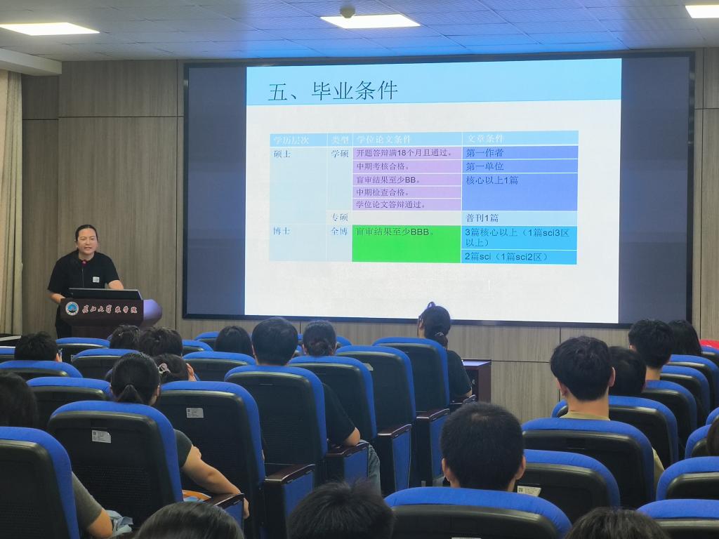 研究生教育与团队建设办公室主任杜亚楠和教学秘书雷翠玉聚焦学术领域,分别就团队建设、团队力量、培养方案、学术规范与导学关系等主题进行系统阐释,鼓励新生树立远大科研志向,筑牢专业根基,恪守学术道德,积极融入科研团队,勇攀科学高峰。