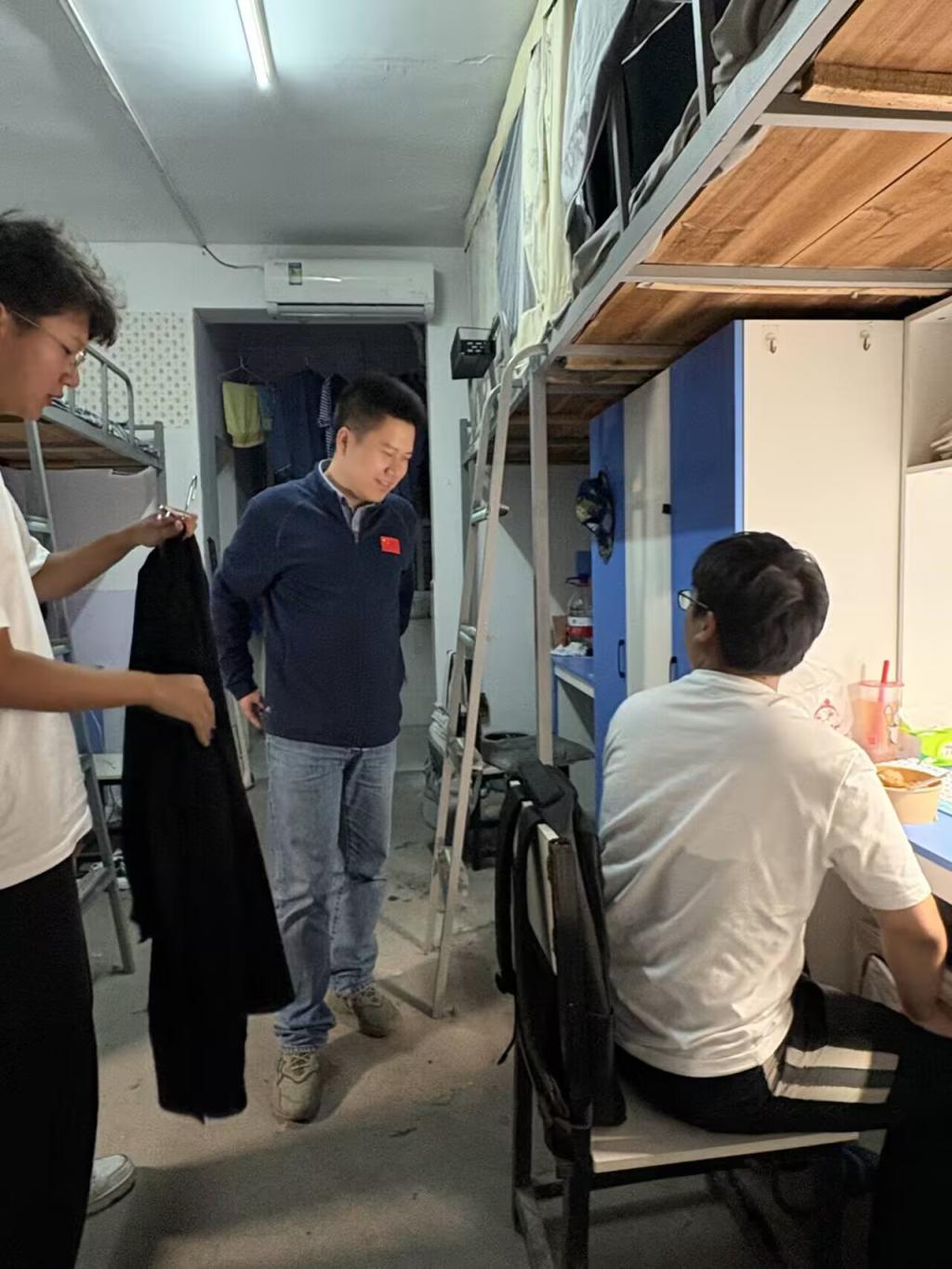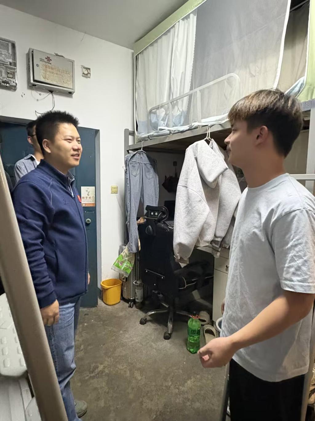 (通讯员 代派领/文 段文洁/摄)为深入了解员工生活环境,进一步加强员工宿舍的卫生与安全管理,排查潜在风险,营造整洁、文明、安全、和谐的学习生活氛围, 9月25日晚7点tyc122ccVIP学工办主任黄承石,团委书记付雪娇,辅导员唐玉婷,兼职辅导员郑雪娅,高明銮,宿委会的员工干部集中查寝。