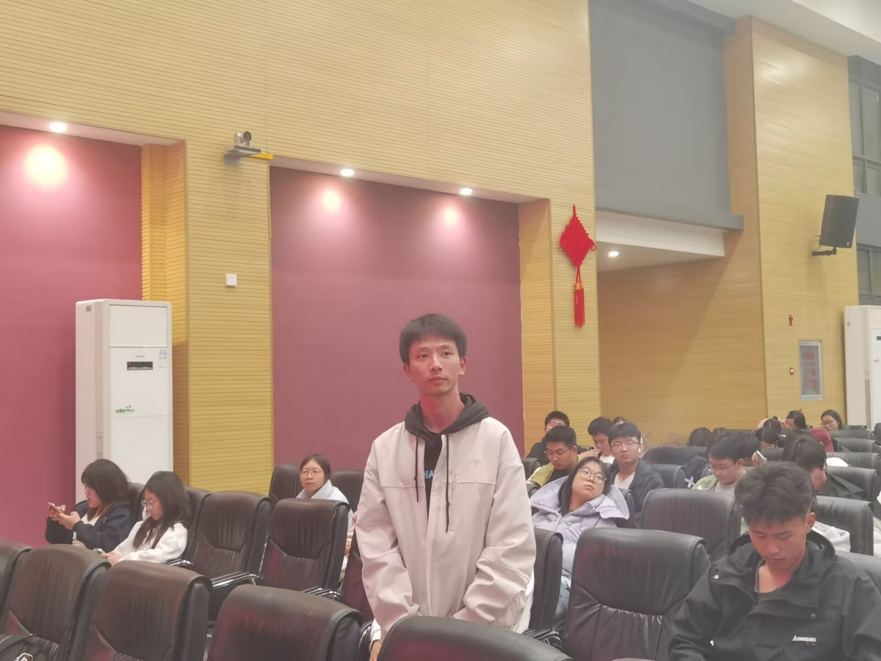 随后,史庆潇围绕“思想”“学习”“竞赛”“实践”四个维度,全面分享了自己的成长经历。他鼓励同学们以积极心态直面挑战,强调课堂积累与科研实践的双重重要性,建议新生珍惜每一堂专业课并主动加入科研团队。同时,他结合自身参赛经历,提醒同学们密切关注赛事信息,勇于尝试、善于总结。此外,他分享了平衡学习与实践的心得,呼吁同学们在社会实践中增长才干,让青春在服务 “三农” 的广阔天地中闪光。