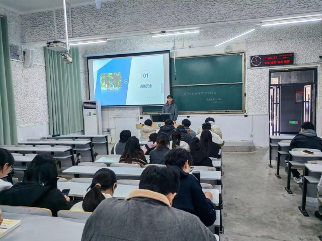 消防安全教育环节紧扣冬季气候干燥、宿舍用电需求攀升的季节特点,各班主讲人围绕“隐患识别—规范遵守—应急处置”逻辑主线展开系统讲解。从火灾隐患日常排查要点,到宿舍禁用大功率违规电器、不私拉乱接电线等核心规范,再到教学楼与宿舍逃生路线、消防器材使用方法,内容全面覆盖校园生活全场景。为强化警示效果,主讲人播放真实火灾案例视频,直观呈现违规用电的严重后果,让同学们深刻感知安全风险“近在咫尺”;班会后,各班级同步开展宿舍安全自查行动,针对插线板老化、电器违规摆放等细节问题逐一提醒整改,推动安全意识从“入耳入脑”向“外化于行”转变。