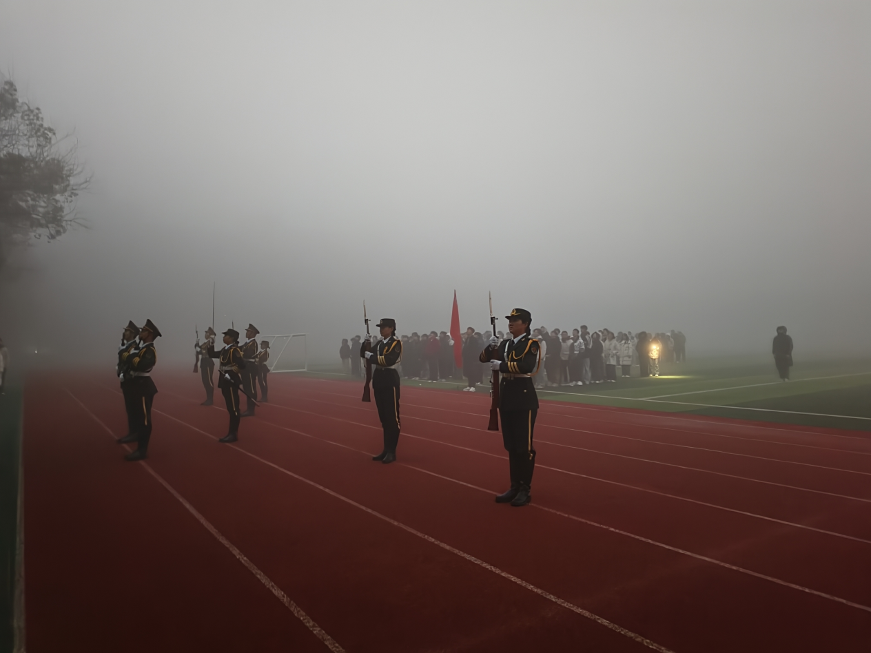 伴随着晨光熹微,国旗护卫队踏着整齐铿锵的步伐护送国旗入场。雄壮的《义勇军进行曲》奏响,五星红旗冉冉升起,全体师生肃立注目,目光追随着鲜红的旗帜,心中涌动着对祖国的赤诚热爱与对农学事业的坚定追求,在凛冽寒风中更显初心如磐。