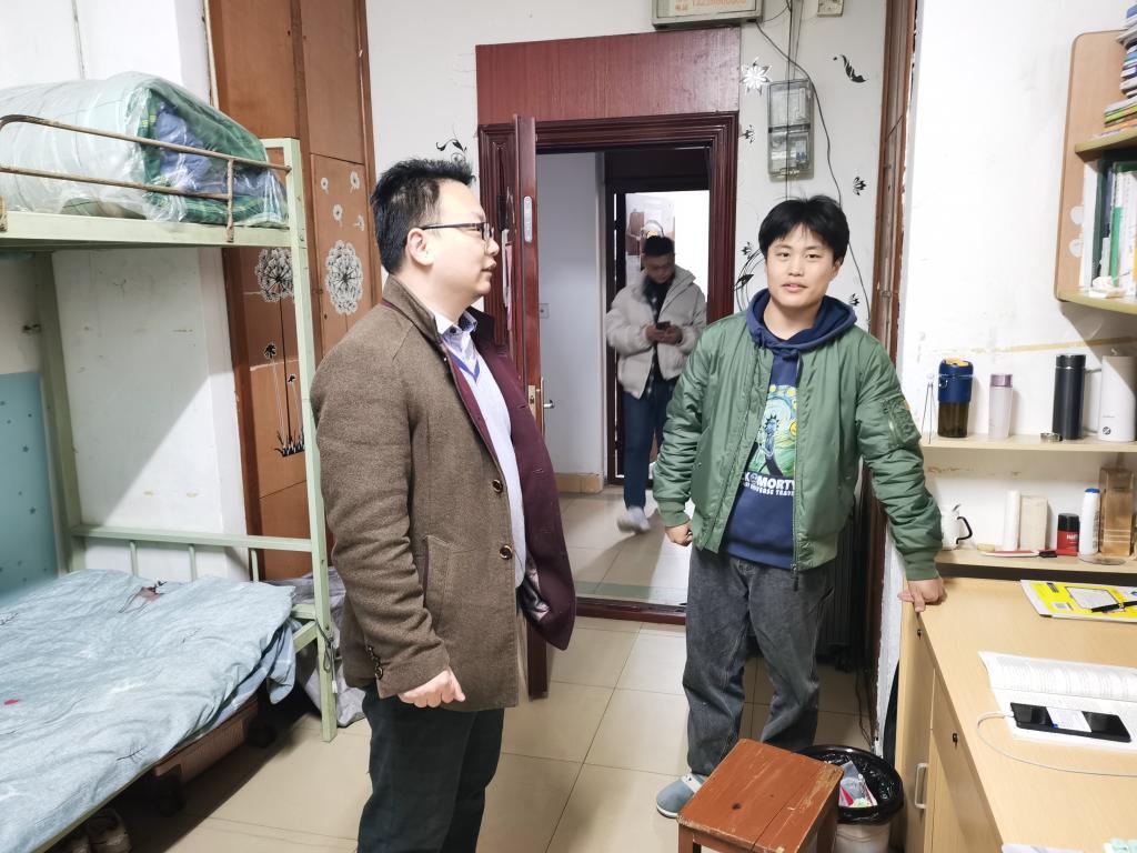 2月12日晚,tyc122ccVIP全体班主任辅导员深入寝室看望员工,了解员工返校情况,共话新学期,同时叮嘱同学们认真复习迎接考试。