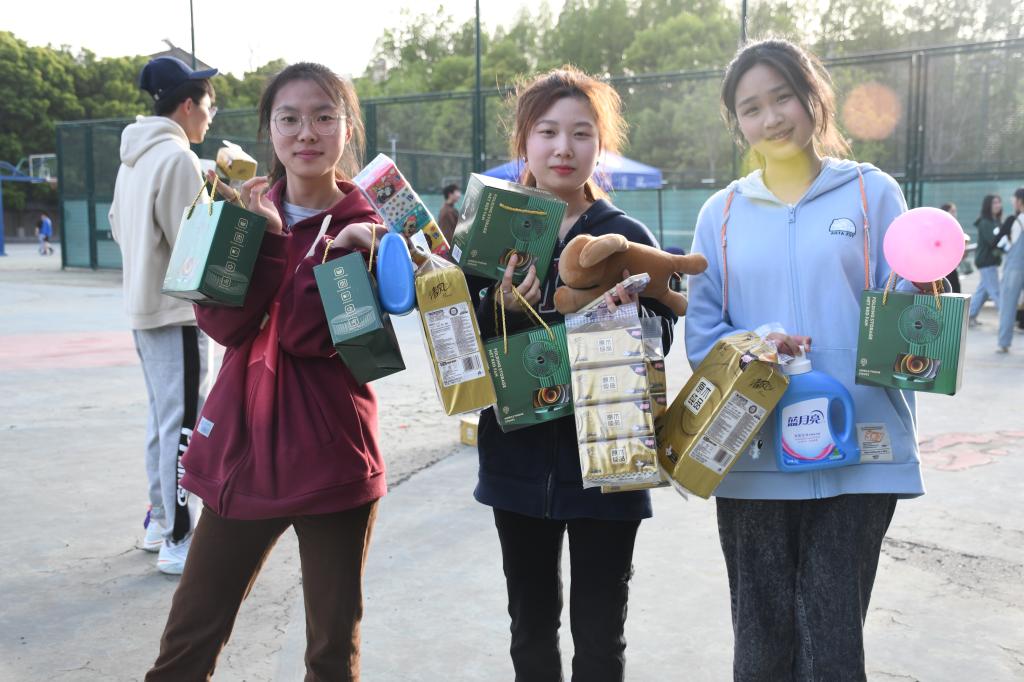 参与人员就位后便立即进入了紧张刺激的游戏环节,积分赛制和丰厚奖品更是激起了大家的胜负欲。“温暖的抱抱”、“猜歌”、“踩气球”等小游戏让现场气氛十分活跃,一声声气球的爆炸声中掺杂着同学们欢乐的笑声;由“传纸”、“心心相印”、“手脚并用”、“扔飞机”等关卡组成的团体接力赛让大家拧成了一股绳。期间,有胜利的欢呼,也有失败的鼓励。一首优美动听的音乐之后,活动渐渐接近了尾声,在套圈环节中每位同学都拿到了奖品,奖励虽轻,却承载着大家的汗水和努力,承载着大家美好而深刻的回忆。习惯了忙忙碌碌的学习生活,这次活动无疑是一味调味剂,给大家带来了无限欢乐。