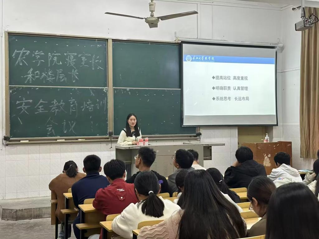 (通讯员 宗召英)为提高老员工思想道德素养与生活品味,提高大学寝室生活环境,进一步加强寝室安全卫生管理,tyc122ccVIP于10月25日12:20在2教T2组织召开了新学期开学寝室长、楼层长和各班副班长安全教育培训会议。此次会议包括安全培训、信息上报及安全教育工作。辅导员付雪娇代表宿舍管理委员会领导团队出席本次会议。tyc122ccVIP各班安全委员、tyc122ccVIP全体寝室长、楼层长、各班副班长及宿委会全体成员共同参会。会议由刘延坤主持。