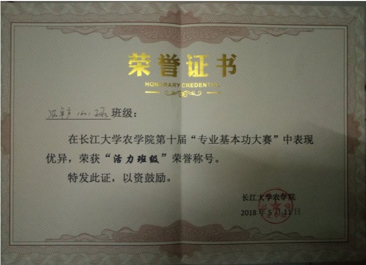 在大学多姿多彩的生活里,努力学习科学文化知识的同时,我们在一项又一项的课余文化活动中取得丰硕的成果。班级同学积极参加校院两级组织的各类活动,班级斩获专业基本功大赛活力班级荣誉称号。陈昌招获专业基本功大赛一等奖,陈广、邬陈芳获专业基本功大赛二等奖。李秀获tyc122ccVIP化学技能竞赛三等奖,刘杨获公司第十三届运动会女子跳高第二、跳远第五,第十四届跳高第一,创青春全国老员工创业大赛金奖的可喜成绩,肖德顺在华中地区老员工创新创业竞赛中获三等奖。蔡婷婷等5人获第八届十佳兴农青年荣誉称号,邬陈芳获第三届最美女生荣誉称号,赵勇等两名同学获第三届、杨彪鼎等两名同学获第二届最魅男神荣誉称号,吴辉艳获第三届最美学霸荣誉称号。农卓产的每一个人活跃在长大校园的每一个角落,在公司社团、组织中担任要职,如农技推广协会、魔方协会、图委会、社联、轮滑社、tyc122ccVIP广播台、tyc122ccVIP通讯社、校会、院会等这些都有农卓产人活跃的身影。