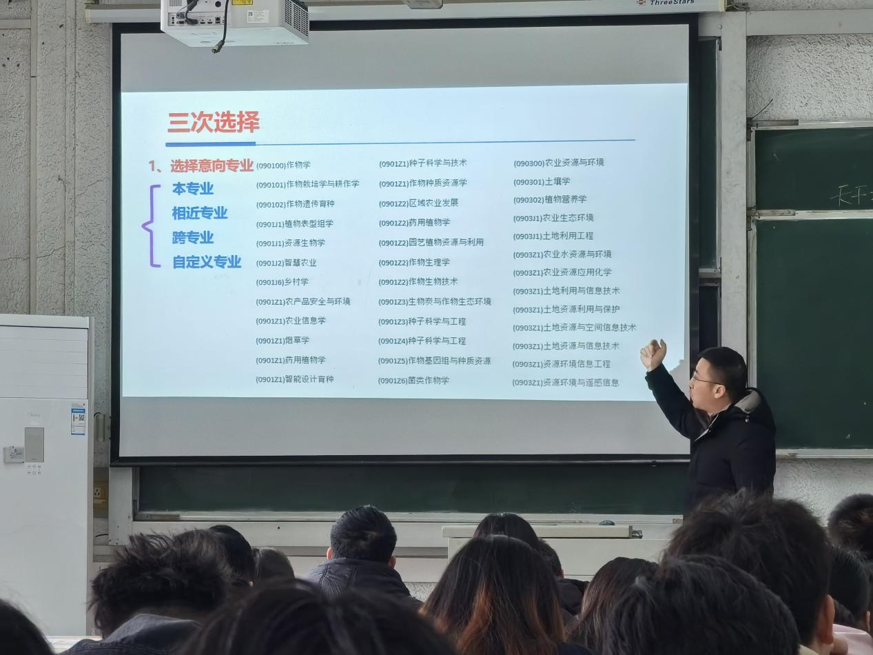 谭老师主要从当前考研形势、报考院校选择、考研复习备考三个方面展开详细论述。对于农学相关专业来说,目前整体就业形势依然严峻,考研是较好的选择。目前考研报录比大约为3:1,公司前几届员工考研录取比将近一半,考取概率较大。谭老师强调,报考院校主要是信息战,不仅可以报考高校,报考科研院所也是很好的选择。他建议同学们根据自身情况选择报考地区,选择专业时可报考相近专业,提高报考成功的概率。谭老师为同学们做了清晰而简洁的复习备考时间规划,方便同学们的高效备考。