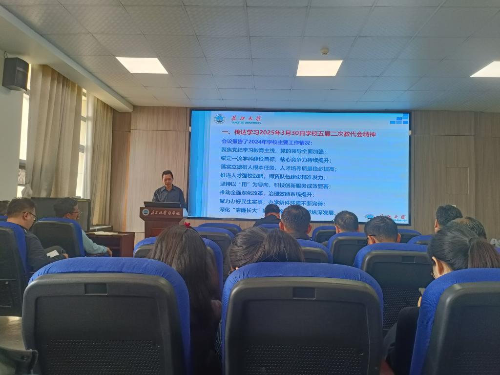 会上,周锦华通报了开展深入贯彻中央八项规定精神学习教育的有关情况;传达学习了3月30日公司五届二次教代会精神,报告了公司2024年主要工作情况及工作成效,阐述了公司2025年工作要着力构建“六项机制”、不断强化“六个意识”,要通过统筹推进“八个坚持”做好全年工作。周锦华引用公司党委书记王建平在闭幕式上的讲话精神,要求广大党员、干部和教职工:要统一思想,凝心聚力争创一流;要深化改革,攻坚克难冲刺一流;要锤炼作风,求实进取决胜一流。