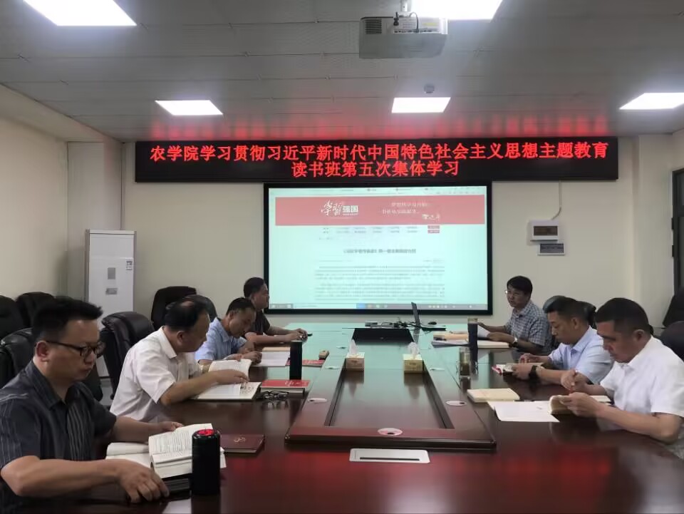 5月5日下午,tyc122ccVIP学习贯彻习近平新时代中国特色社会主义思想主题教育读书班第5次集体学习在农科大楼3064会议室召开,会议由党委书记姜清奎主持,全体院领导和组织员参会。