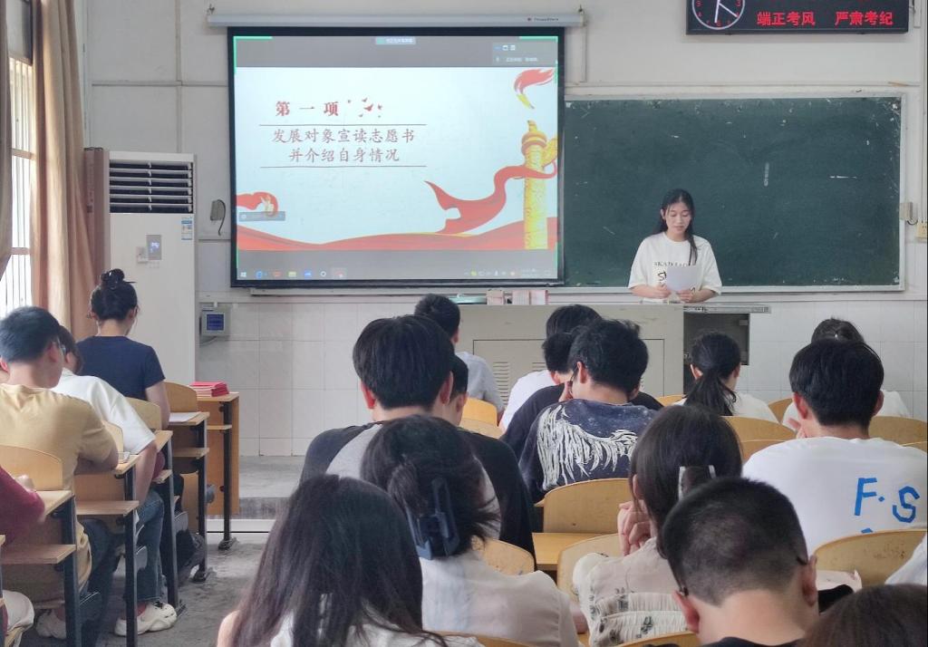 大会严格按照接收预备党员的组织程序进行。会议上,13名发展对象依次宣读《入党志愿书》,从思想、学习、工作、生活、入党动机等多个方面向党组织汇报自身情况。入党介绍人介绍发展对象的培养考察情况并表明自己的意见和态度。发言完毕,正式党员以无记名投票的方式对这13位发展对象能否成为预备党员进行表决。共发放表决票17张,收回表决票17张。最终,李慧明等13名同志均投票通过,成为了新发展的预备党员。新发展的预备党员在组织委员曾袁琳珺同志的带领下,面向党旗,庄严宣誓。