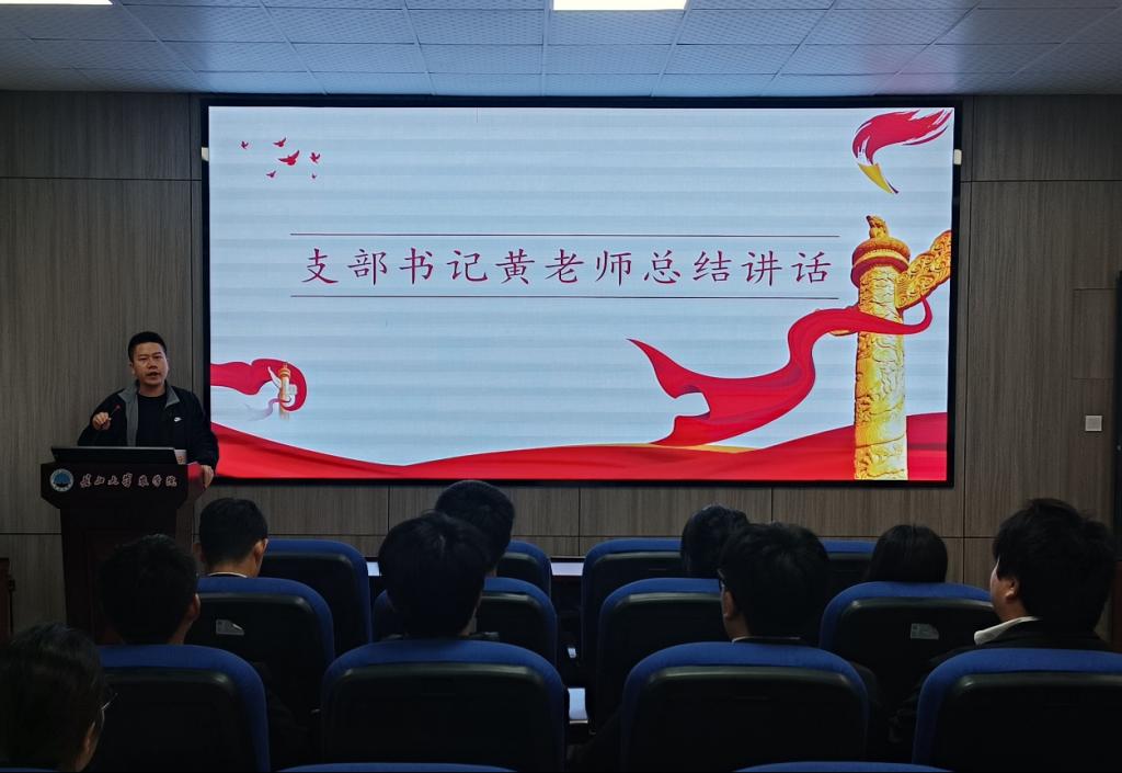 会议最后,黄承石老师以“在克服困难中彰显党员本色”为主题作总结交流。他从自身体会出发阐述了一代人有一代人的长征,指出当代青年党员站在先辈们用奋斗与牺牲开辟的道路上,更应坚定理想信念,明晰奋斗方向。同时援引国奖答辩选手的榜样案例,号召全体党员见贤思齐,指出只有付出超越常人的时间与精力,才能在追求卓越中真正发挥党员的先锋模范作用。黄老师强调,克服困难的关键在于永葆思考的习惯,要善于穿透复杂现象把握事物本质规律,从而走好我们这一代人的长征路。