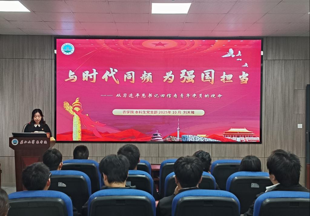 会上,刘天雅同志以习近平总书记的重要回信为核心,深刻阐释了回信中所蕴含的“教育、科技、人才”三位一体的战略考量,及其对新征程上落实立德树人根本任务的指导意义。结合切身体会,她生动解读了回信对广大师生提出的殷切期望——个人的成才之路应同国家发展同频共振,并号召全体党员要将国家发展的“大趋势”作为个人成长的“导航图”;要用专业领域的“硬本领”充当服务战略的“压舱石”;更要在服务人民的广袤天地里,将知识转化为价值,书写知行合一的无悔青春。