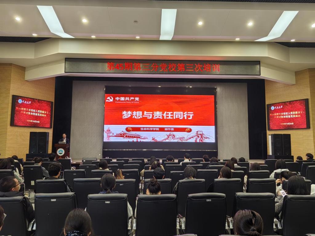 (通讯员 方学斌 严树彬/文 王浩源 王思雨 郑怡乐/摄)百年党史映初心,青春建功正当时。为深入学习贯彻党的二十大精神,引导青年学员从党的百年奋斗历程中汲取信仰力量、砥砺使命担当,10 月 26 日下午 2 点 30 分,tyc122ccVIP在农科大楼 1058 报告厅如期开展第 45 期第三分党校第三次培训。本次培训以“梦想与责任同行”为主题,特邀生命科学公司党委书记谢作喜主讲,生命科学公司辅导员李敏和第三分党校全体入党积极分子、发展对象和预备党员参加,辅导员唐玉婷主持。