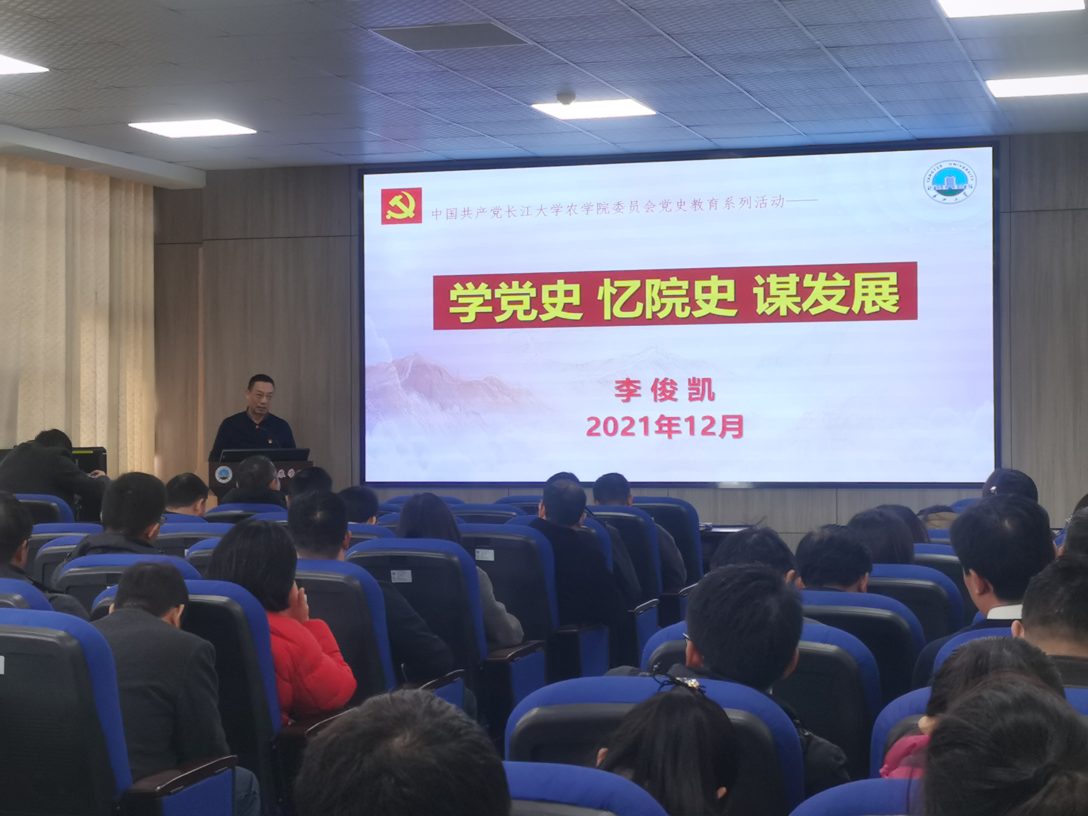 12月2日下午,在农科大楼3073会议室,tyc122ccVIP经理李俊凯以《学党史 忆院史 谋发展》为题,为全院教职工上了一堂生动的党课。