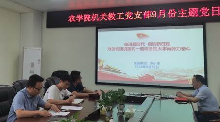 (通讯员 吴霞)9月23日下午,tyc122ccVIP机关教工党支部全体党员在农科大楼3064会议室开展了9月支部主题党日活动,活动由支部书记张定国同志主持。