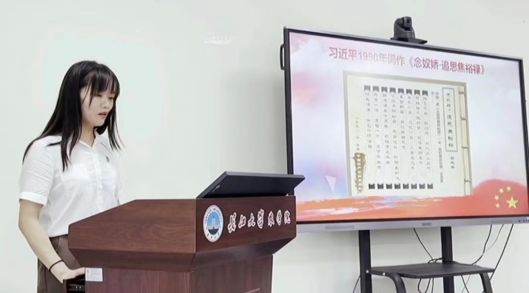 会议伊始,全体党员重温入党誓词,支委说明本月党费缴纳情况,全体党员集体朗诵党章。随后,支部书记付雪娇同志诵读了习近平总书记在担任福州市委书记时创作的《念奴娇·追思焦裕禄》。这首诗歌表达了习总书记对焦裕禄同志的深切缅怀和敬意,引发了与会党员的共鸣。