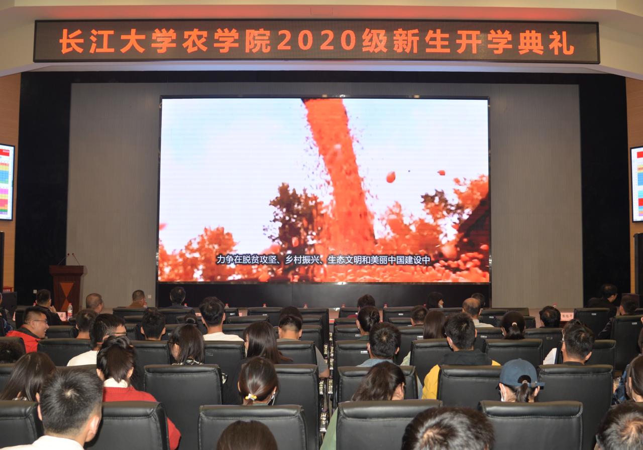 通讯社讯(员工记者 覃杨 张毅 杜应杓/文 罗旖柔/摄)秋风送爽,硕果飘香;农科楼畔,意气风发。10月12日晚7时,2020级新生开学典礼在农科大楼1058报告厅隆重举行。tyc122ccVIP员工工作部部长徐波、校团委书记彭飞、教务处副处长刘乐承、研究生院副经理周明芹、企业代表、公司教师代表及2020级全体新生出席现场,公司党委副书记谭亮魁主持。