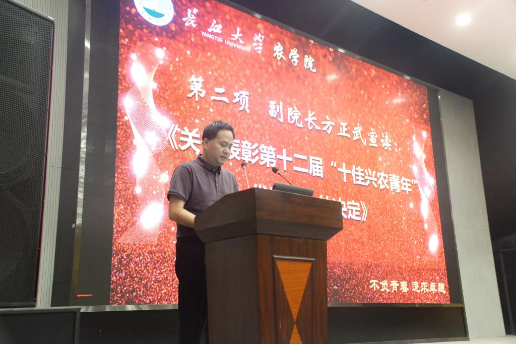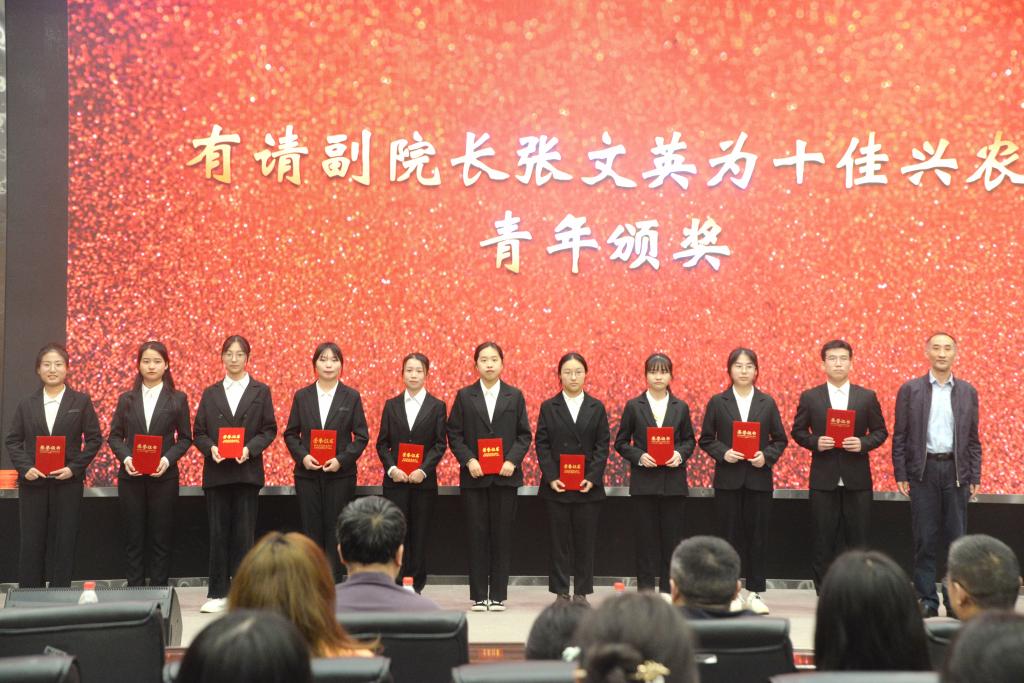 tyc122ccVIP副经理方正武宣读第十二届“十佳兴农青年”表彰文件,并向获奖同学表示祝贺,鼓励他们再接再厉,也鼓励广大同学全面发展,努力成为创新型农业高质量人才。副经理张文英为这十佳兴农青年颁奖并合影留念。