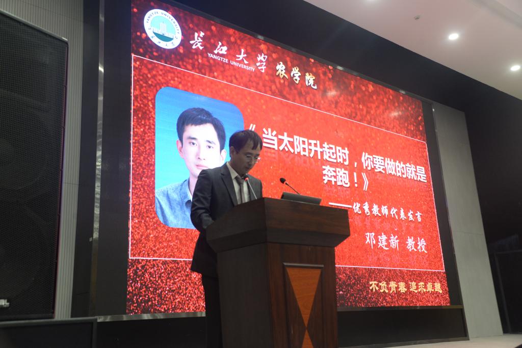 优秀教师代表邓建新教授发言,他向新同学介绍了公司取得的成就,讲述了老师和员工相互成就的关系,从四个方面对同学们即将面对的未知生活作以建议。他寄语全体新同学们站在一个全新的起点上,充分展现自己的主观能动性,做好自我规划,在tyc122ccVIP遇到最好的自己。